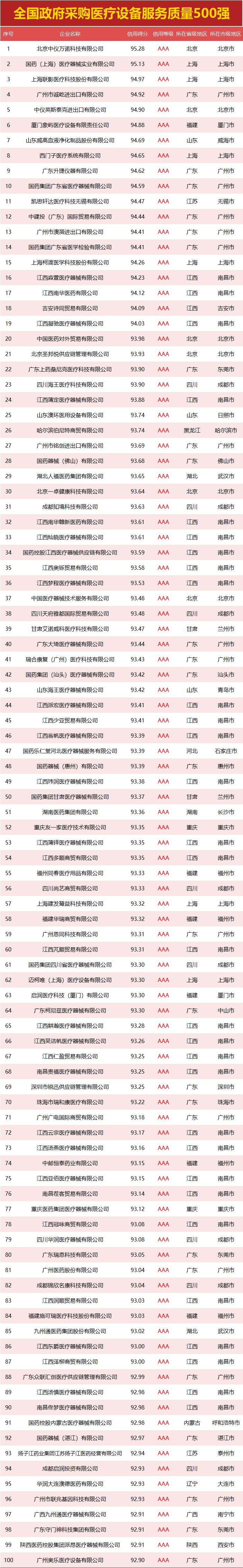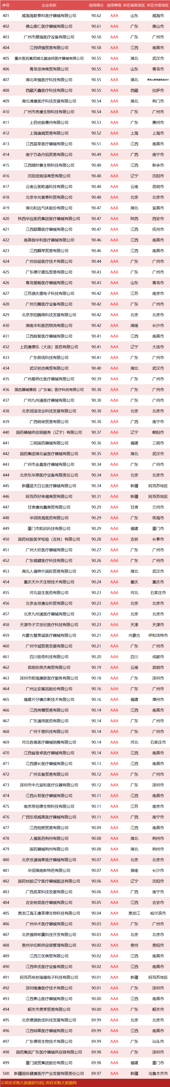 独家|全国政府采购医疗设备服务质量500强,您企业上榜了吗?
