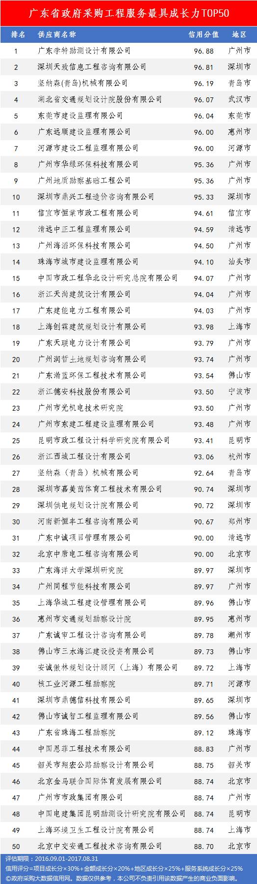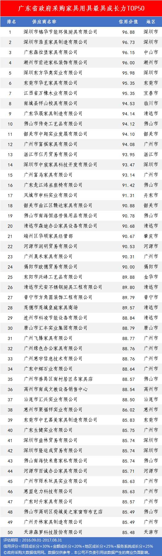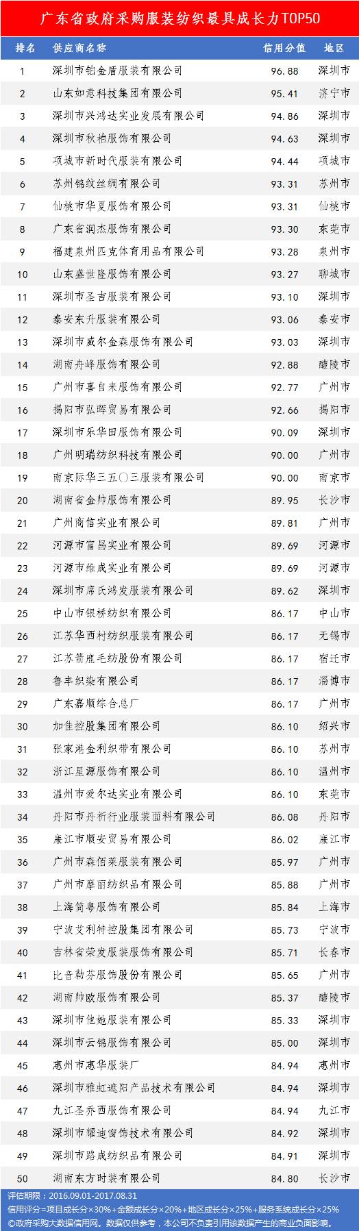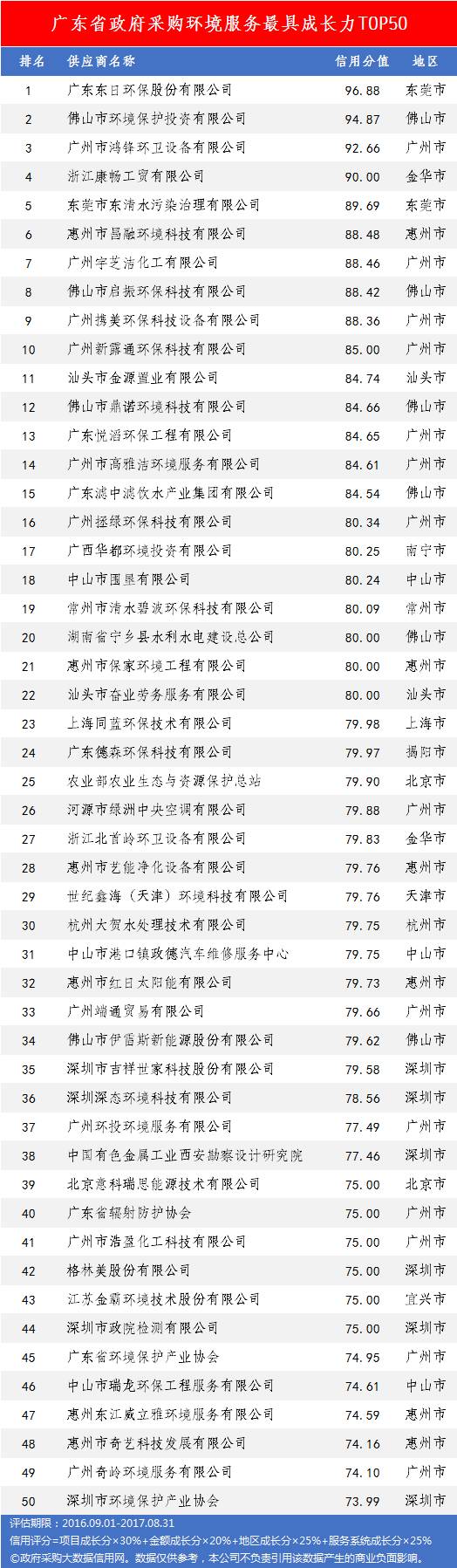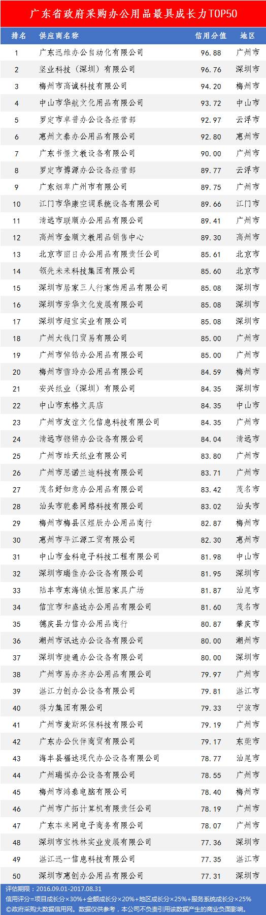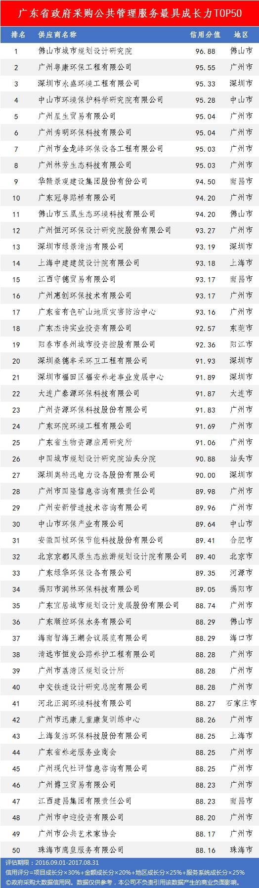 本次参评的供应商总数达78736家,涉及607条政府采购行政处罚记录和427条政府采购投诉(成立)记录。数据来源于广东省内公开的政府采购相关信息,具体来源涵盖:广东省政府采购网的公开项目信息、政府各部门公布的采购信息、广东省政府采购各代理机构网站中公布的政府采购项目信息、中国政府采购网等。数据评估时段为:2014年10月1日至2017年9月30日。现对全社会公示,有效公示期为7天。