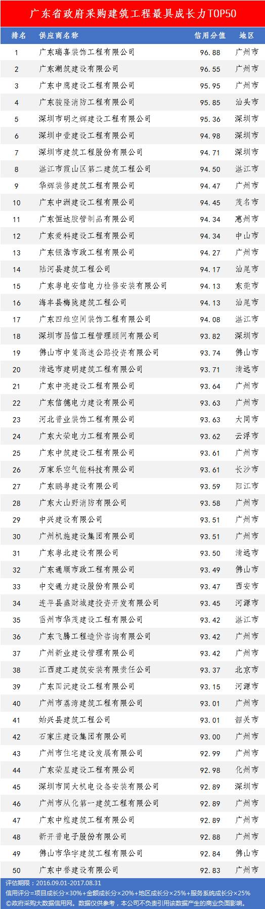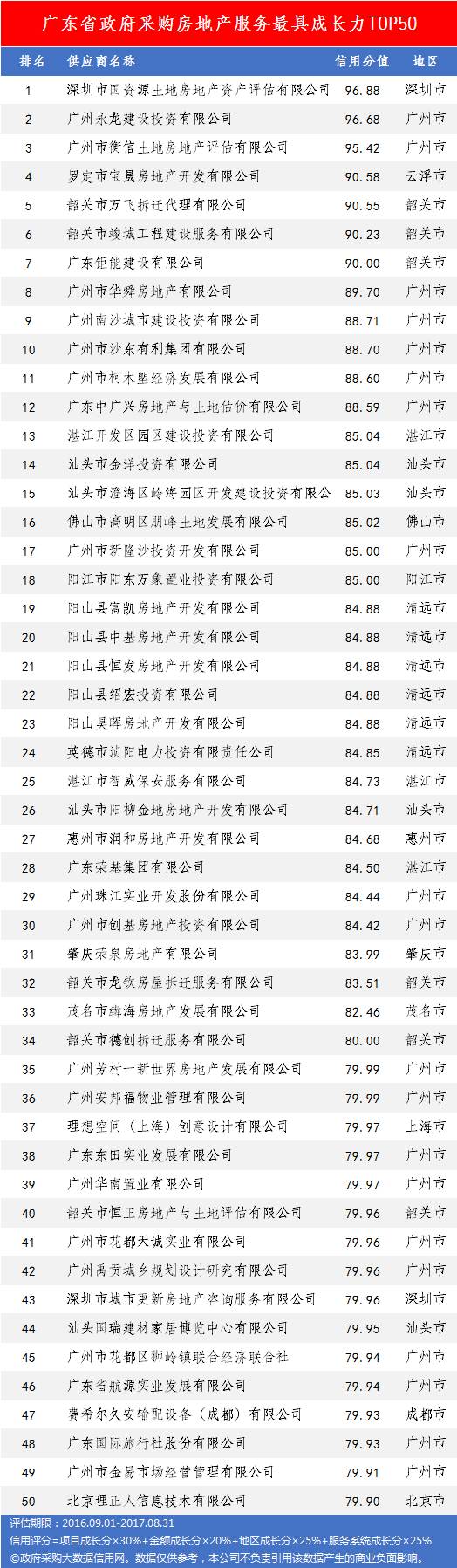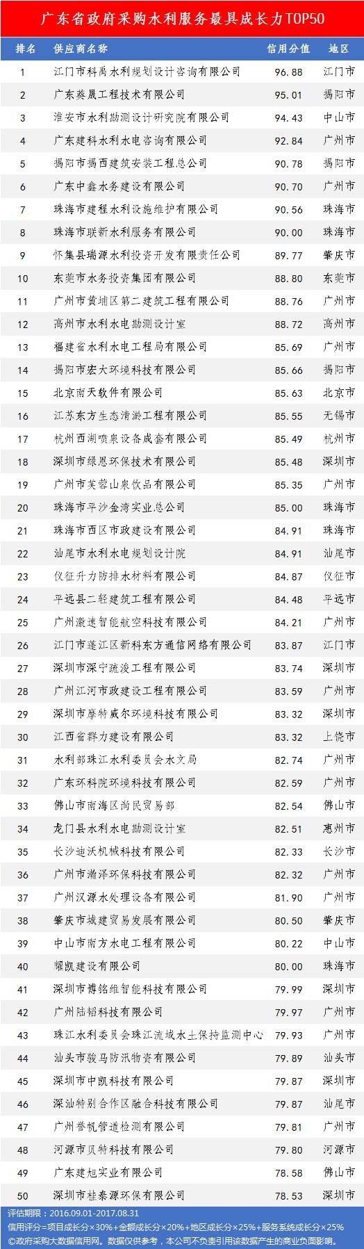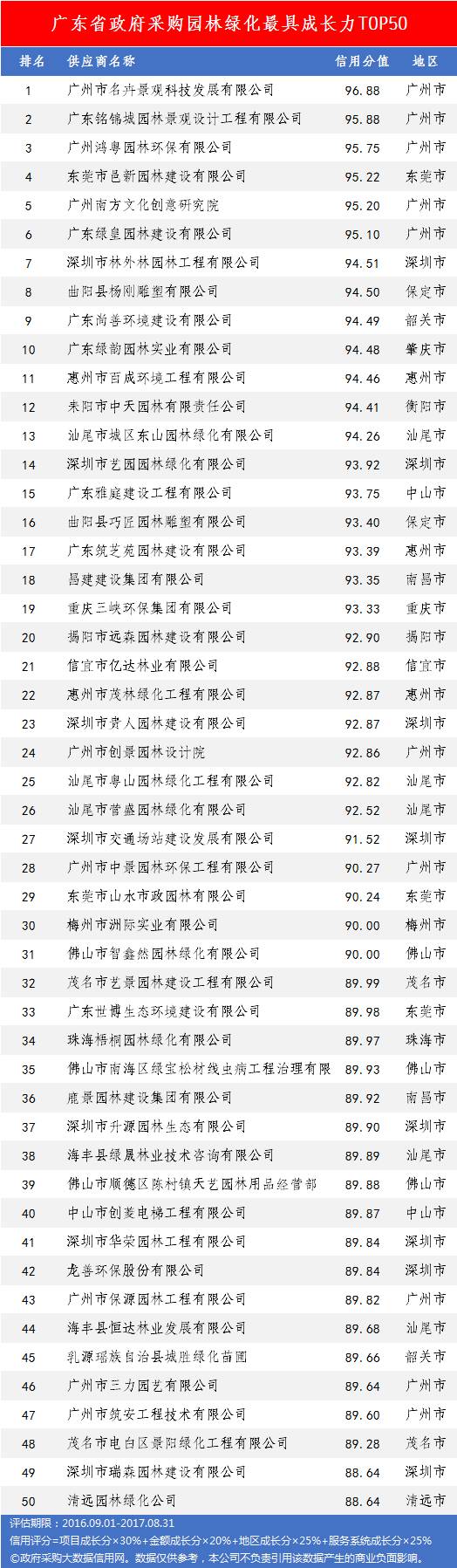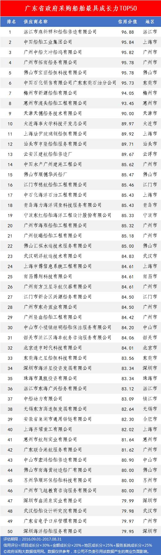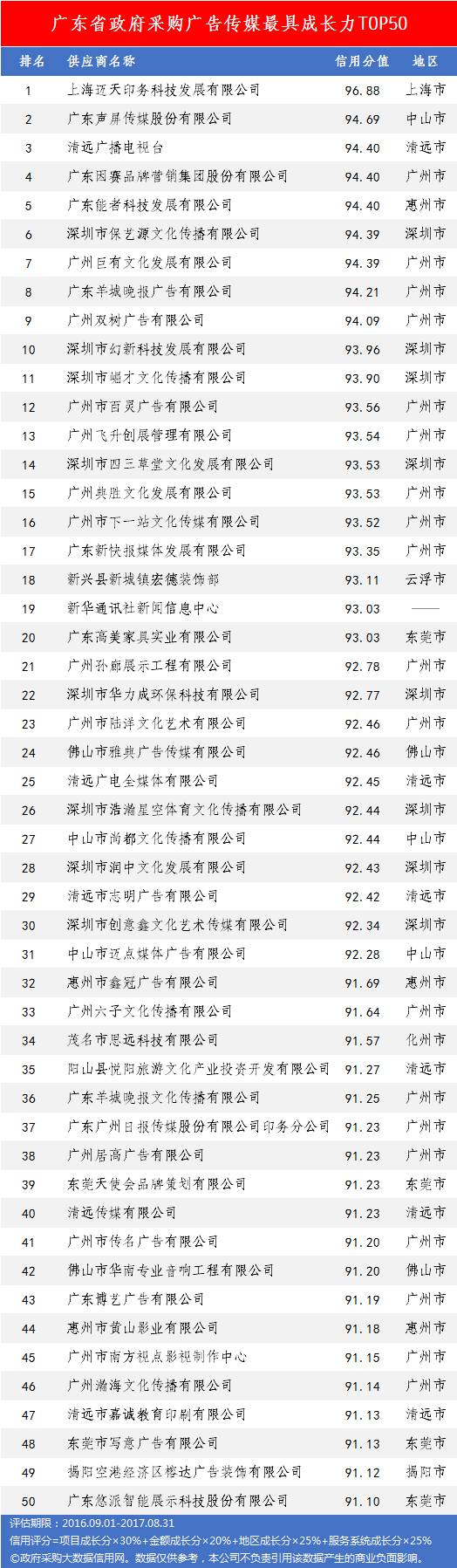 本次参评的供应商总数达78736家,涉及607条政府采购行政处罚记录和427条政府采购投诉(成立)记录。数据来源于广东省内公开的政府采购相关信息,具体来源涵盖:广东省政府采购网的公开项目信息、政府各部门公布的采购信息、广东省政府采购各代理机构网站中公布的政府采购项目信息、中国政府采购网等。数据评估时段为:2014年10月1日至2017年9月30日。现对全社会公示,有效公示期为7天。