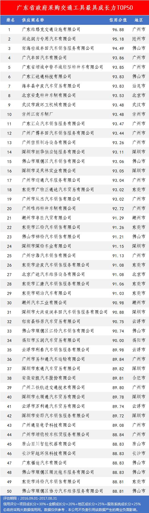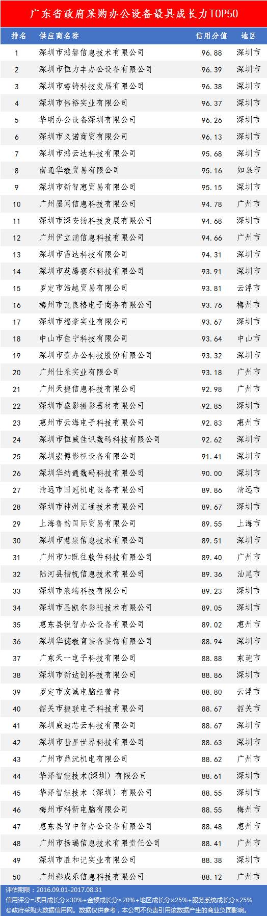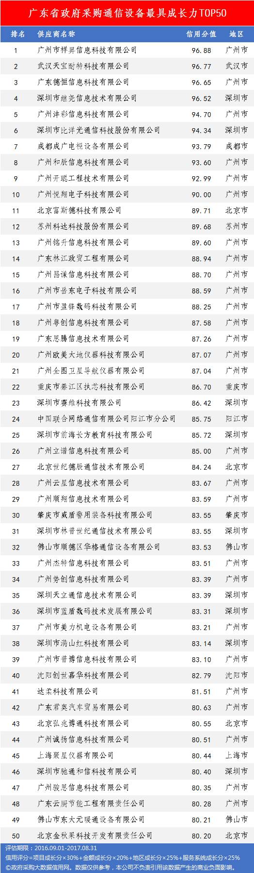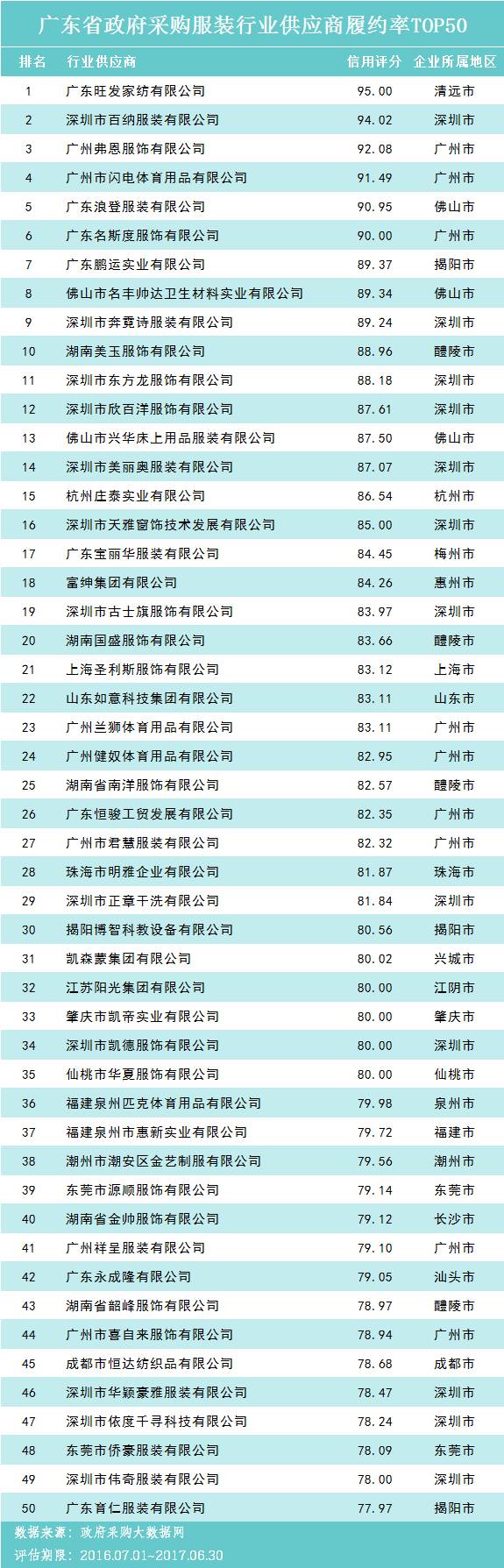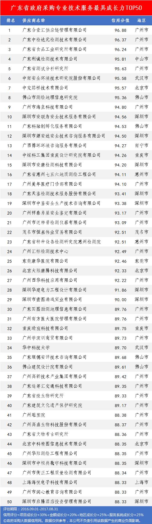本次参评的供应商总数达78736家,涉及607条政府采购行政处罚记录和427条政府采购投诉(成立)记录。数据来源于广东省内公开的政府采购相关信息,具体来源涵盖:广东省政府采购网的公开项目信息、政府各部门公布的采购信息、广东省政府采购各代理机构网站中公布的政府采购项目信息、中国政府采购网等。数据评估时段为:2014年10月1日至2017年9月30日。现对全社会公示,有效公示期为7天。