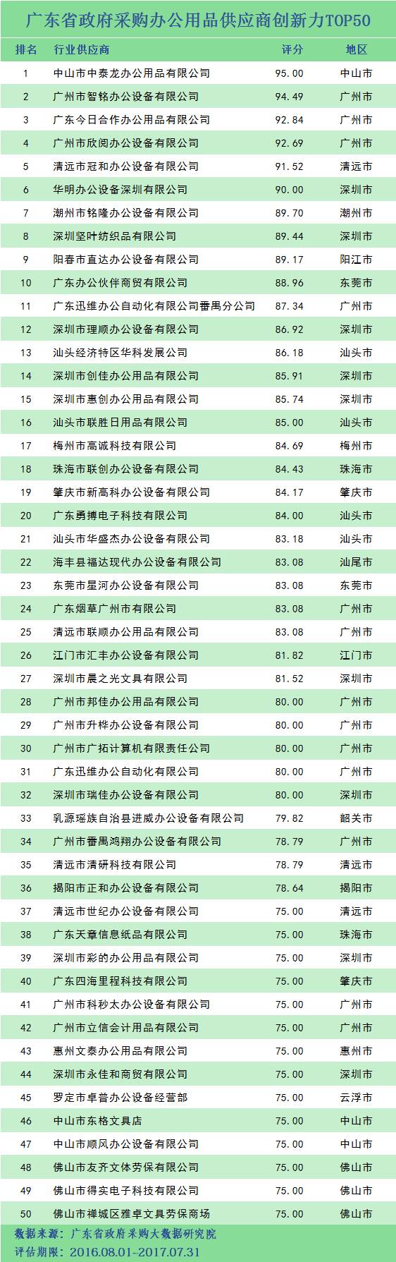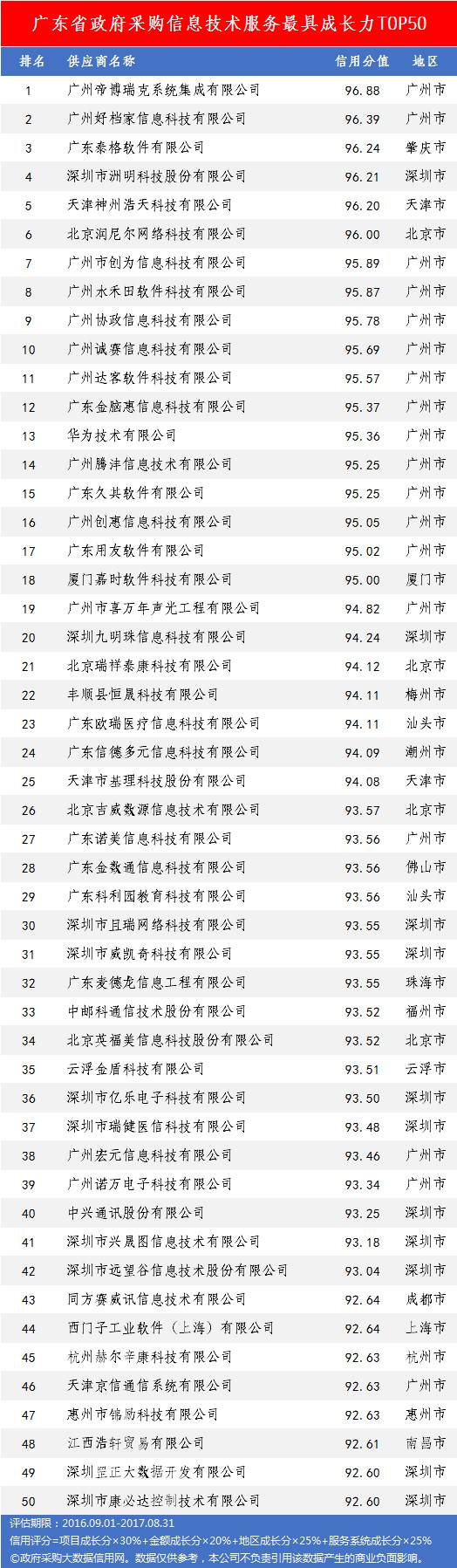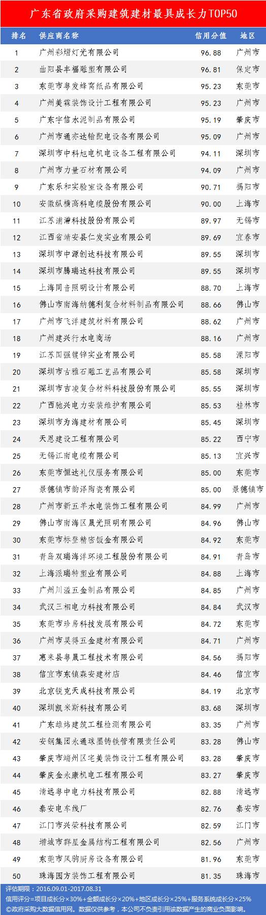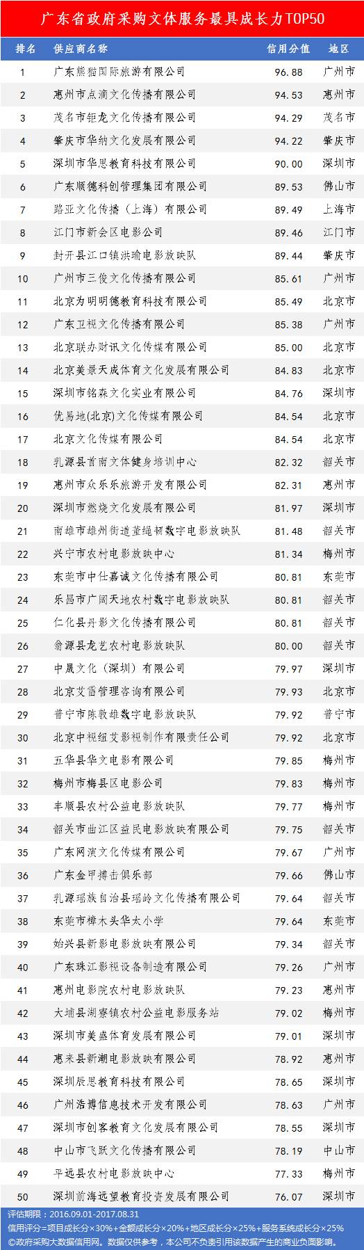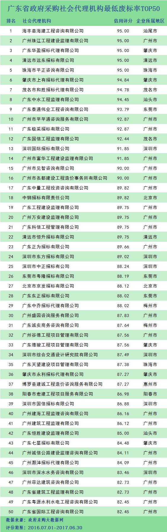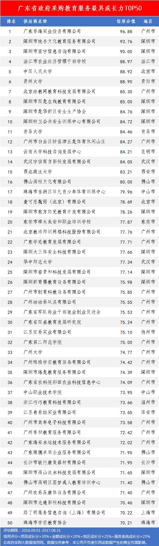 本次参评的供应商总数达78736家,涉及607条政府采购行政处罚记录和427条政府采购投诉(成立)记录。数据来源于广东省内公开的政府采购相关信息,具体来源涵盖:广东省政府采购网的公开项目信息、政府各部门公布的采购信息、广东省政府采购各代理机构网站中公布的政府采购项目信息、中国政府采购网等。数据评估时段为:2014年10月1日至2017年9月30日。现对全社会公示,有效公示期为7天。