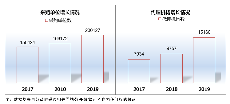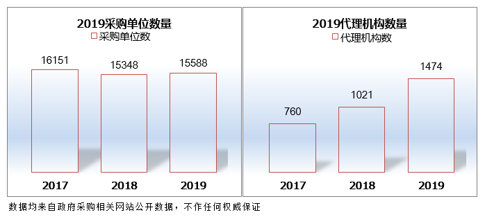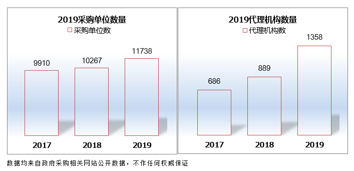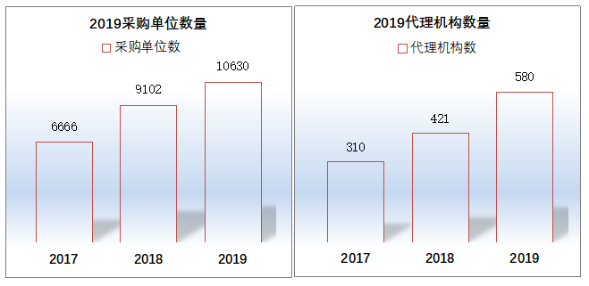 福建政府采购单位数年平均增长26.67%,但2019年增长有所减缓,较去年同期增长了16.79%。