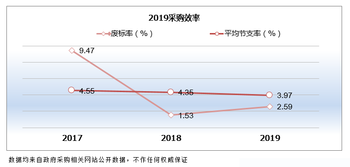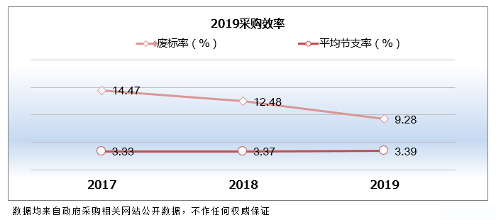 采购效率逐渐成为采购单位关注的一个重点,是选择代理机构的标准之一。数据显示,福建政府采购废标率快速下降,2019年福建政府采购废标率较2017年下降了49.36%。整体采购效率逐年得到提升,这对代理机构的要求也会更高。